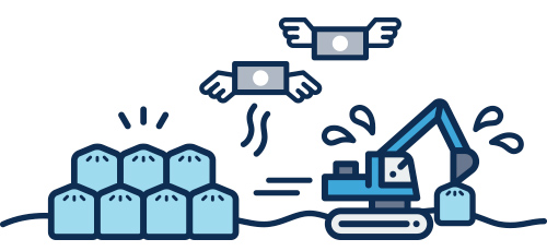 これまで施工不能・施工困難とされてきた再生土に適さない不良土質の現場でも容易に固化地盤にするだけでなく、水中でも容易に固化させます。このように不良地盤でも過剰なコストがかからず、利益を圧迫しません。