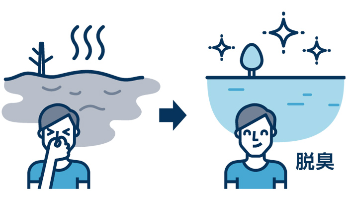 しかも改良土は臭気を吸着する特性をもち、ヘドロ等の強烈な臭気も大きく軽減することが可能。