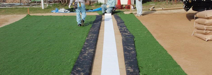 雑草抑止効果を発揮する反面、改良配合量や施工仕上げ方法用途を変えることにより表層緑化を期待できます。