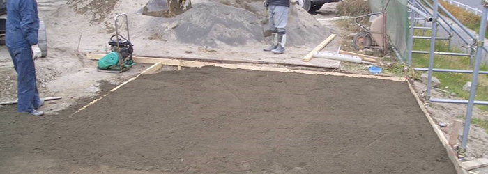 雨天や湧水などでぬかるんだ状態となり強度不足や不陸が発生した場合、一般的にセメント改良が用いられますが、含水の程度により硬化の品質が安定しないことが多く見られます。本工法は、六価クロムを発生することなく確実に硬化し原状回復します。